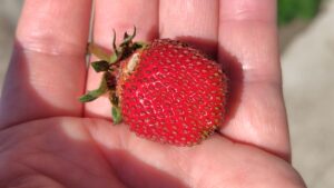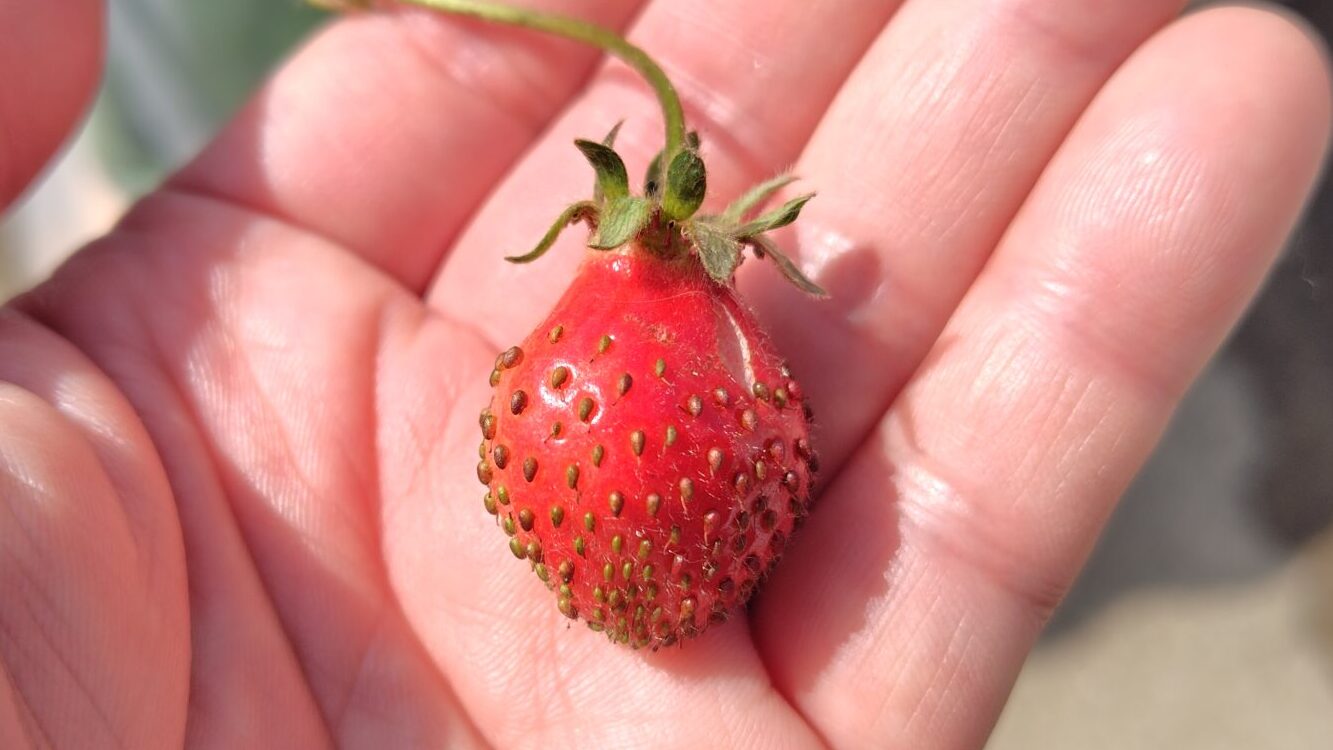採るのがまだ早かったのか、すこし甘さが足りなかった感じでしたが、香りは甘くて、酸味もほど良く、その場でへたまるが美味しくいただきました。