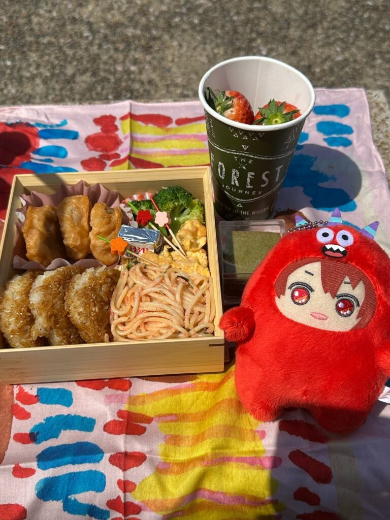 私は運よく広めのベンチに座ることが出来たので、そこで持参した花見弁当を食べることに。