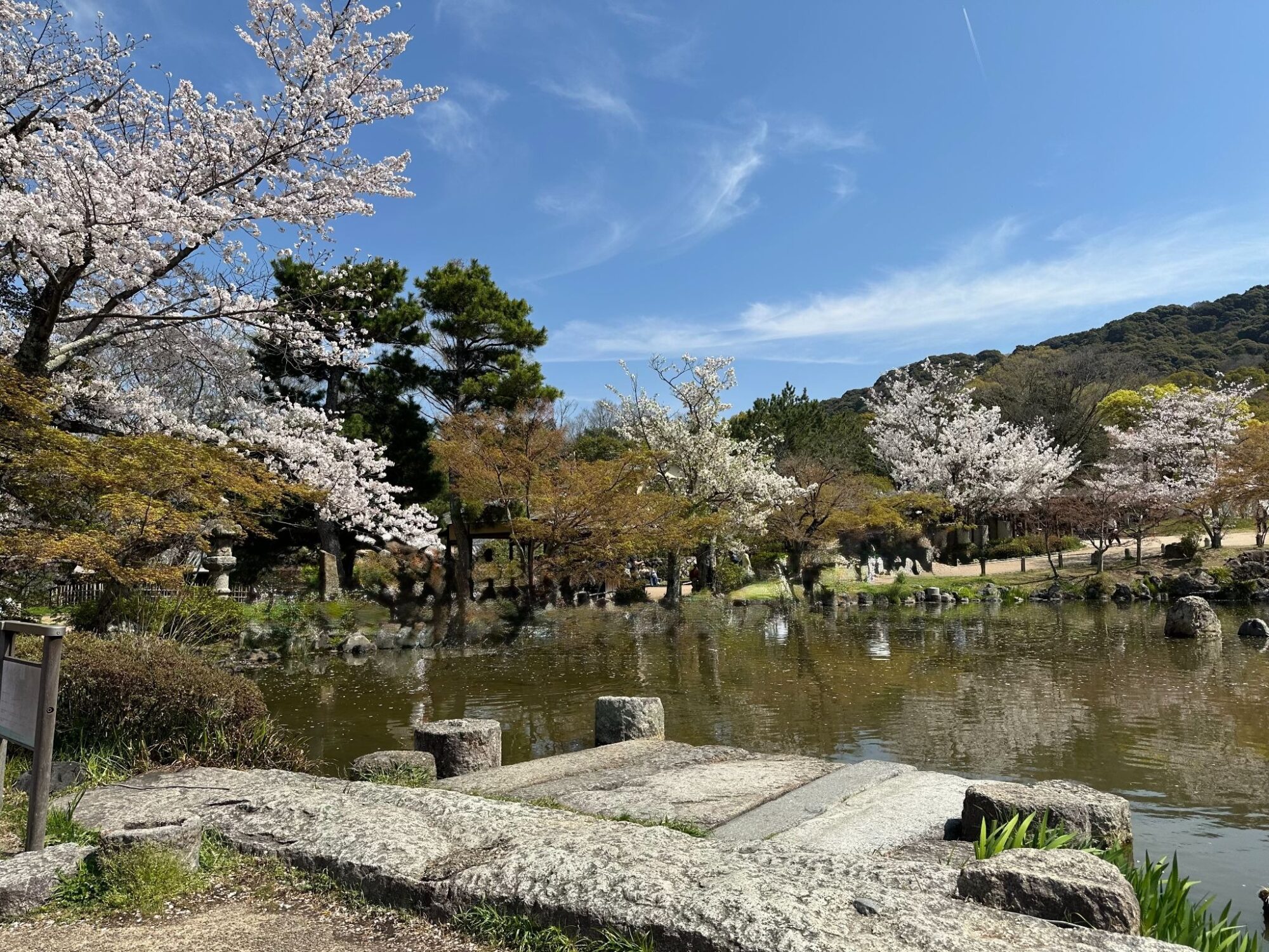 広い公園に桜がたくさん咲いていて、座るところも結構多くありました。