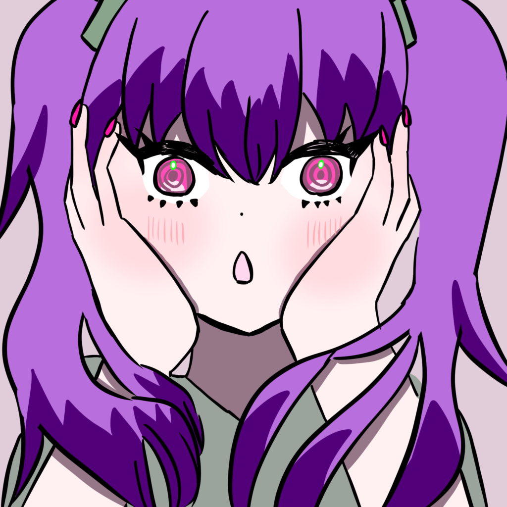 髪の毛みどりにしたら、某ボーカロイドになりそうだったので紫にしました。