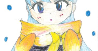 冬らしい絵を描きたかったので、雪を背景に帽子、手袋、マフラーをつけている冬の格好に身を包んだ女の子を描きました。目の色...