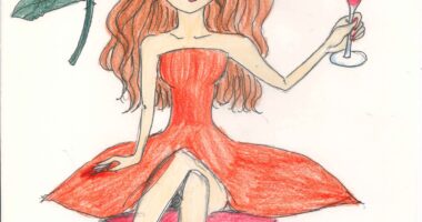 今回の作品は、ゴージャスな女性をイメージして描きました。「人生薔薇色」をテーマに描いてみました。脚を組んで、真っ赤なド...