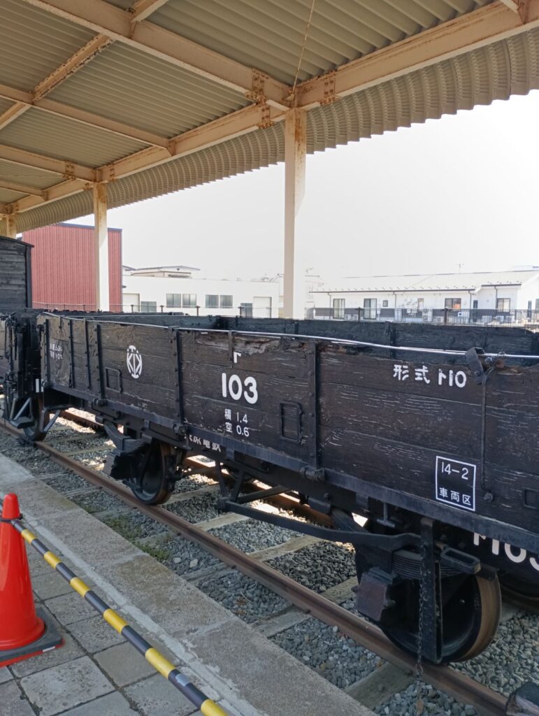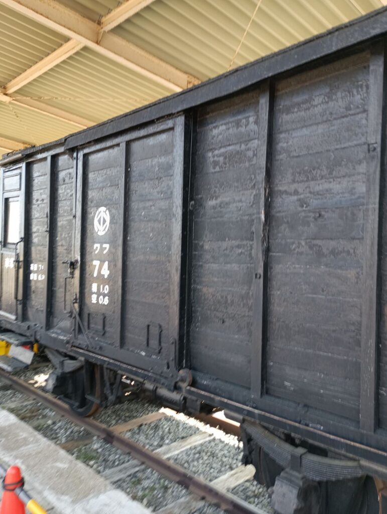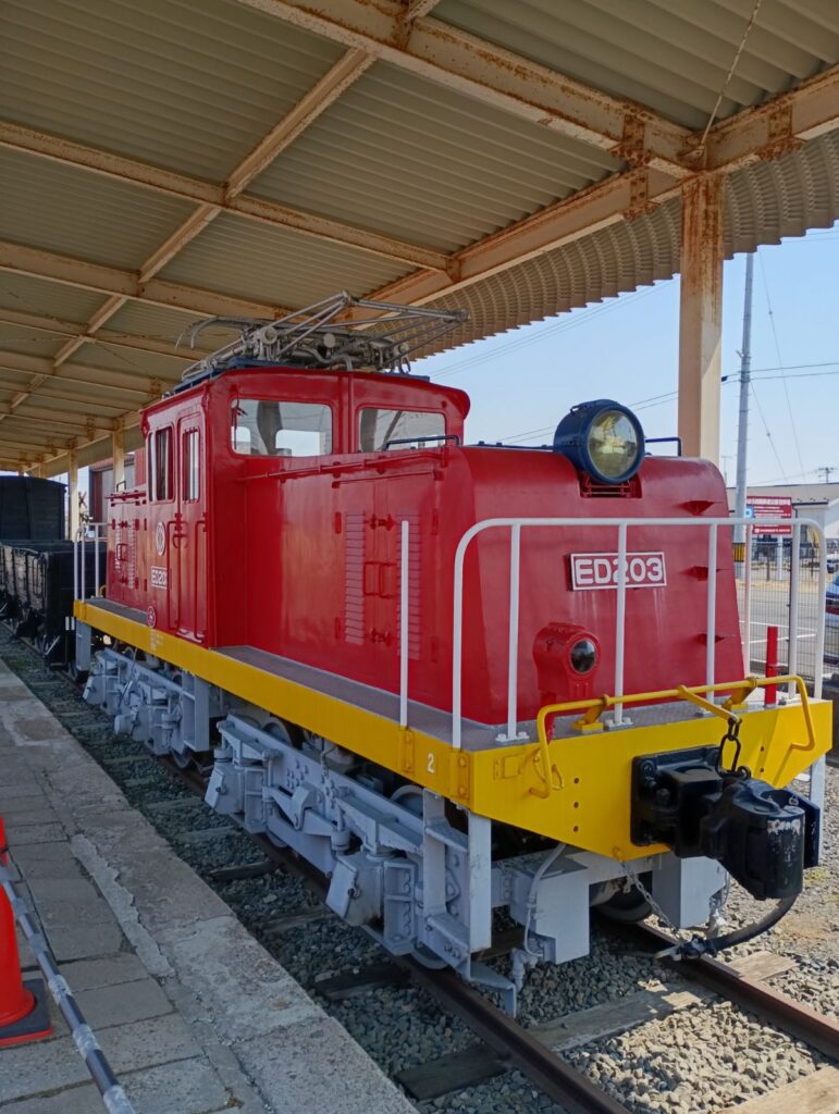 栗原電鉄時代に細倉の鉱山から砕石などを輸送していた貨物列車の機関車や貨車も屋外に展示されています。