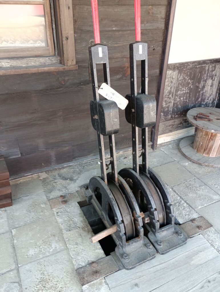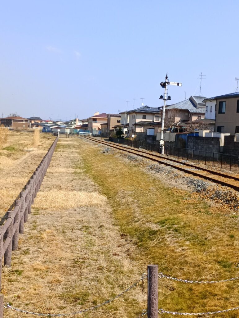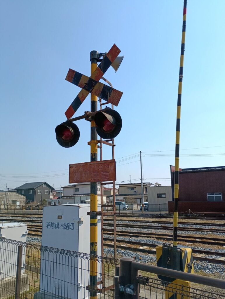 駅周辺には踏切や腕木式信号機もあります。腕木式信号機は昔の日本の鉄道で使われていた信号機で写真にある白と黒の腕木の部分が水平だと赤つまり止まれ。下がると青つまり進めです。きかんしゃトーマスにも出てきます。