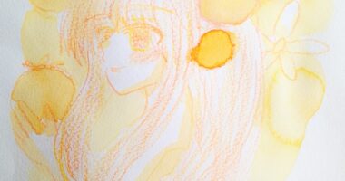 ミックス色鉛筆と透明水彩でオレンジを持っている女の子を描いてみました。 ...