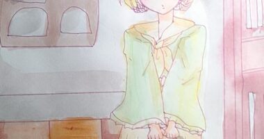 絵の具を使って、レトロな感じに描いてみました!服も建物も大正っぽくしてみました! ...