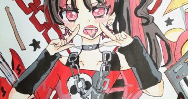 arrtxというブランドのアクリルマーカーとポスカなどを使ってバンド系の女の子を描いてみました。最近は、アクリ...