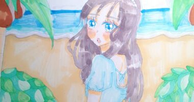 青いペンや夏っぽい色で南国に来ている女の子を描いてみました。 ...
