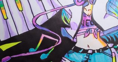 蛍光ペンを使って描いたイラストまとめです!色に合わせてテーマも考えてみました! テーマ「音楽」+「女の子...