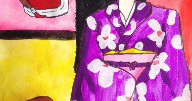 大正時代をモチーフにハイカラな着物を着た女性とカステラと化粧を描いてみました!! ...