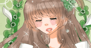 四葉のクローバーで幸せを感じている女性を水彩風に描いてみました。清らかさを感じるような白い服や花弁も素敵ですね...