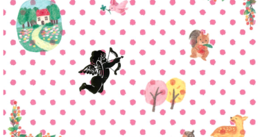 ピンクの水玉のコラージュは、 森の中でリスが抱えてるリンゴを、 密かに天使が狙ってる感じで作りまし...