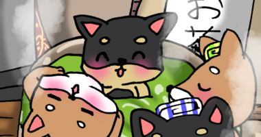 マグカップの中の抹茶の中に温泉のようにお風呂気分で浸かっている4匹の柴犬を描いてみました。お茶の温泉って、身体...