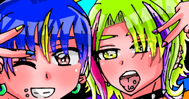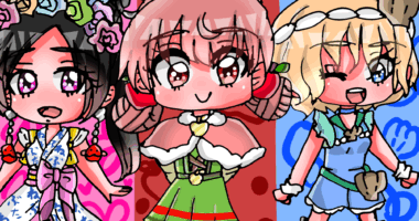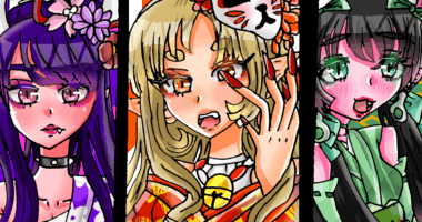 鬼や狐、猫の妖怪の三姉妹の女の子を描いてみました。カッコよく見えるように、縦割り分割にしてみました。 ...