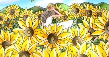 夏の展示物用のイラストです!テーマが「爽」なので、夏らしく暖かで爽やかなひまわり畑に後ろ姿で、女性が眺めながら...