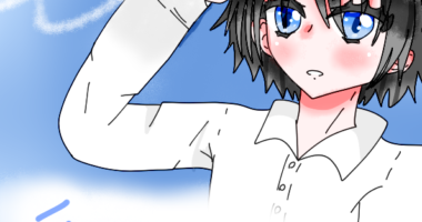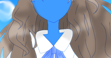 青い空の中でなびく学生の女の子を描いてみました。 ...