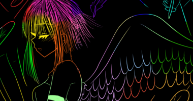 スクラッチアート風に片方の翼しかない少女を幻想的に描いてみました。 ...
