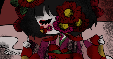椿の花言葉の「優美」や「控えめな優しさ」などモチーフに和モダンっぽく描いてみました!少々ホラーっぽい感じに見え...