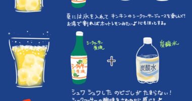 【感想】ハマっているシークヮーサージュースの飲み方をイラストコラムにしてみました。おすすめは、カルピスと炭酸水...
