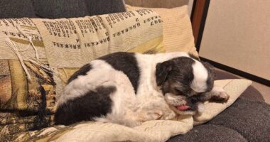 スヤスヤ☆彡 どうどうと座椅子で寝ています( *´艸`) 大きい座椅子ですが・・・占領!! 寝ているときも舌チ...