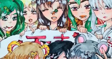 冬のイラストまとめです!昨年描いた絵がメインです! 十二支の擬人化の女の子達を描いてみました。集合絵を描...