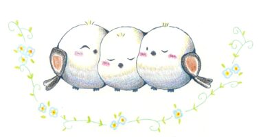 今回はシマエナガちゃんを描いてみました。 三匹のシマエナガちゃんが寄りそって暖まっている様子のイメージで...