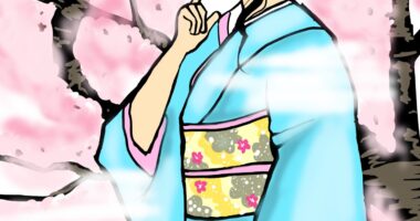 こんにちは!TOSHIです。 今回は桜のイラストを描かせていただきました。 着物の女性の背...