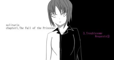 solitario: chapter1.The Fall of the Princess「3.Troublesome Requests②」「ふーん、あなたが噂の「M」ね...。確かに噂通り仕事出来そうだけど...地味ね」「…」家主はMの容姿を見て馬鹿にする...
