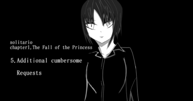 solitario: chapter1.The Fall of the Princess「5.Additional cumbersome requests」午前4時辺りあの出来事から数時間が経ち、Mは紙の裏側に書いてあった地図の場所へとタクシーで移動していた。ノイズ混じりの...