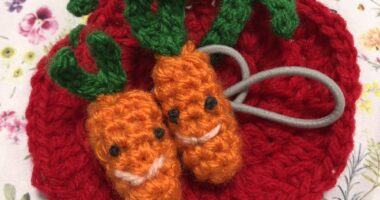 アクリル毛糸で、にんじんヘアゴムとトマトのエコたわしを作りました。 にんじんヘアゴム ...