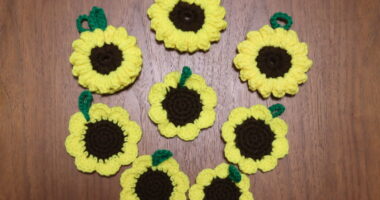 この夏は、ひまわりのエコたわしを2種類編みました。 【シンプルな平面ひまわりタワシ】 ...